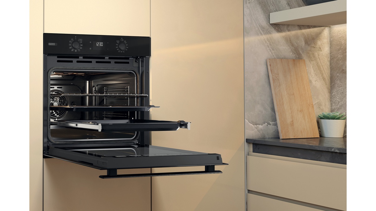 Pulizia PiroliticaLa tecnologia pirolitica usa un ciclo ad alta temperatura per ridurre in cenere i resti di cibo, che si possono quindi facilmente pulire con una spugna. I pannelli in vetro termoriflettente della porta forno mantengono bassa la temperatura esterna, per maggiore sicurezza.