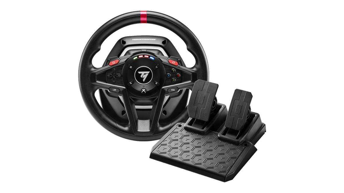 T128 adapts to all driving styles thanks to its 270° to 900° rotation angle and its round, lightweight wheel rim that takes full advantage of all the Force Feedback’s power. The T2PM pedal set, alongside the racing wheel’s magnetic paddle shifters, engine speed LEDs and 13 action buttons, lets you free yourself from having to use a gamepad.