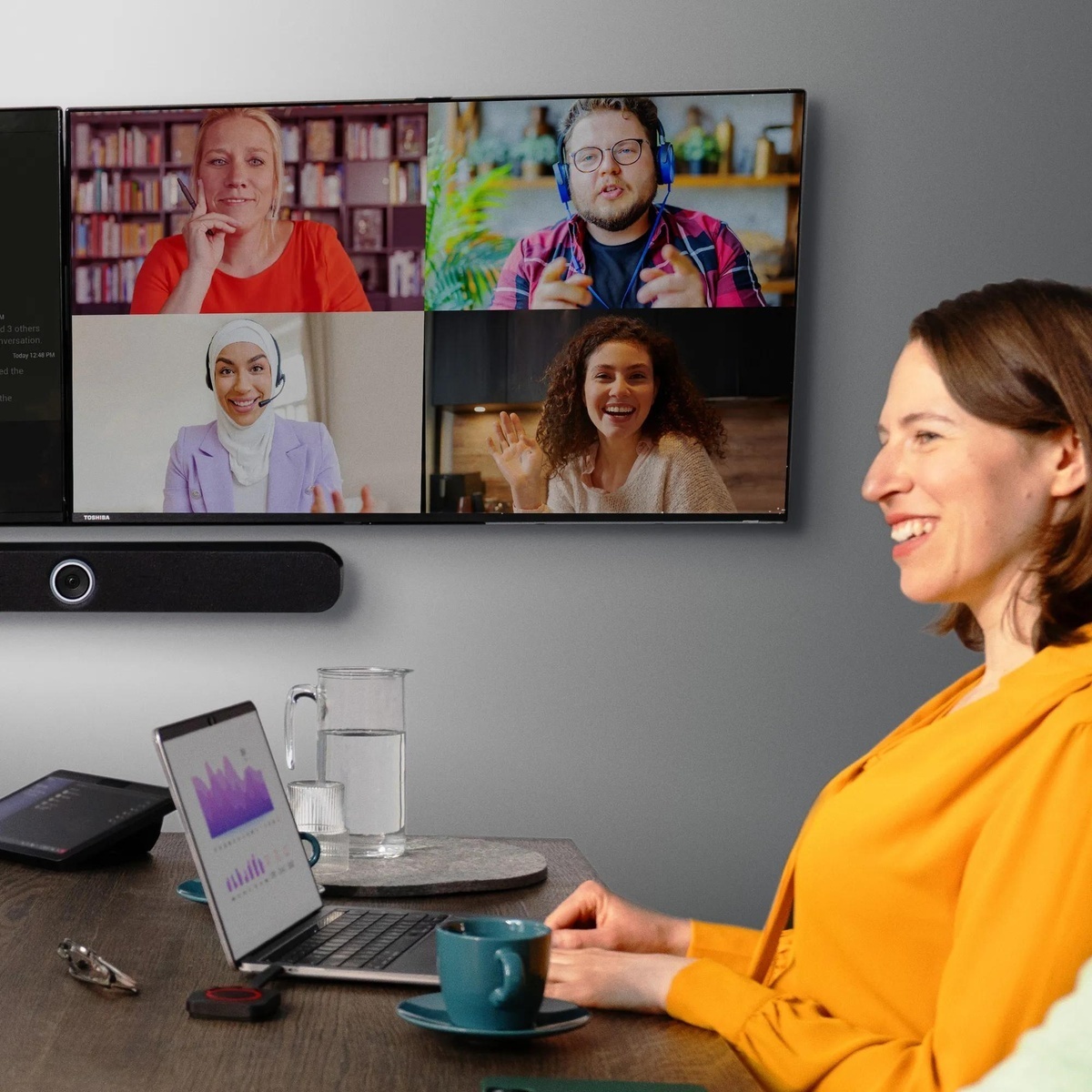 De ClickShare Hub Pro en Sennheiser TeamConnect Bar M-bundel is een gecertificeerde Microsoft Teams Rooms-oplossing voor middelgrote vergaderruimtes. Het biedt moeiteloos draadloos conferencing, 4K-delen, ondersteuning voor twee schermen en geavanceerde audio en video. Deelnemers genieten van verbeterde samenwerking, terwijl IT profiteert van beveiliging, naleving en gestandaardiseerde integratie.